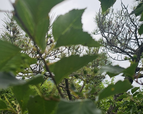 청계산 등산로에 있는 팥배나무. 키가 큰 엄마나무 곁에 어린 나무도 자라고 있습니다. 세 번째 사진에서 보이는 것처럼 피목이 발달하는 것이 팥배나무의 특징 중 하나입니다.